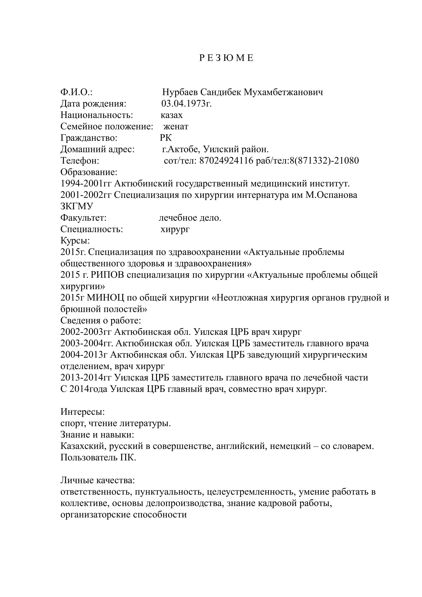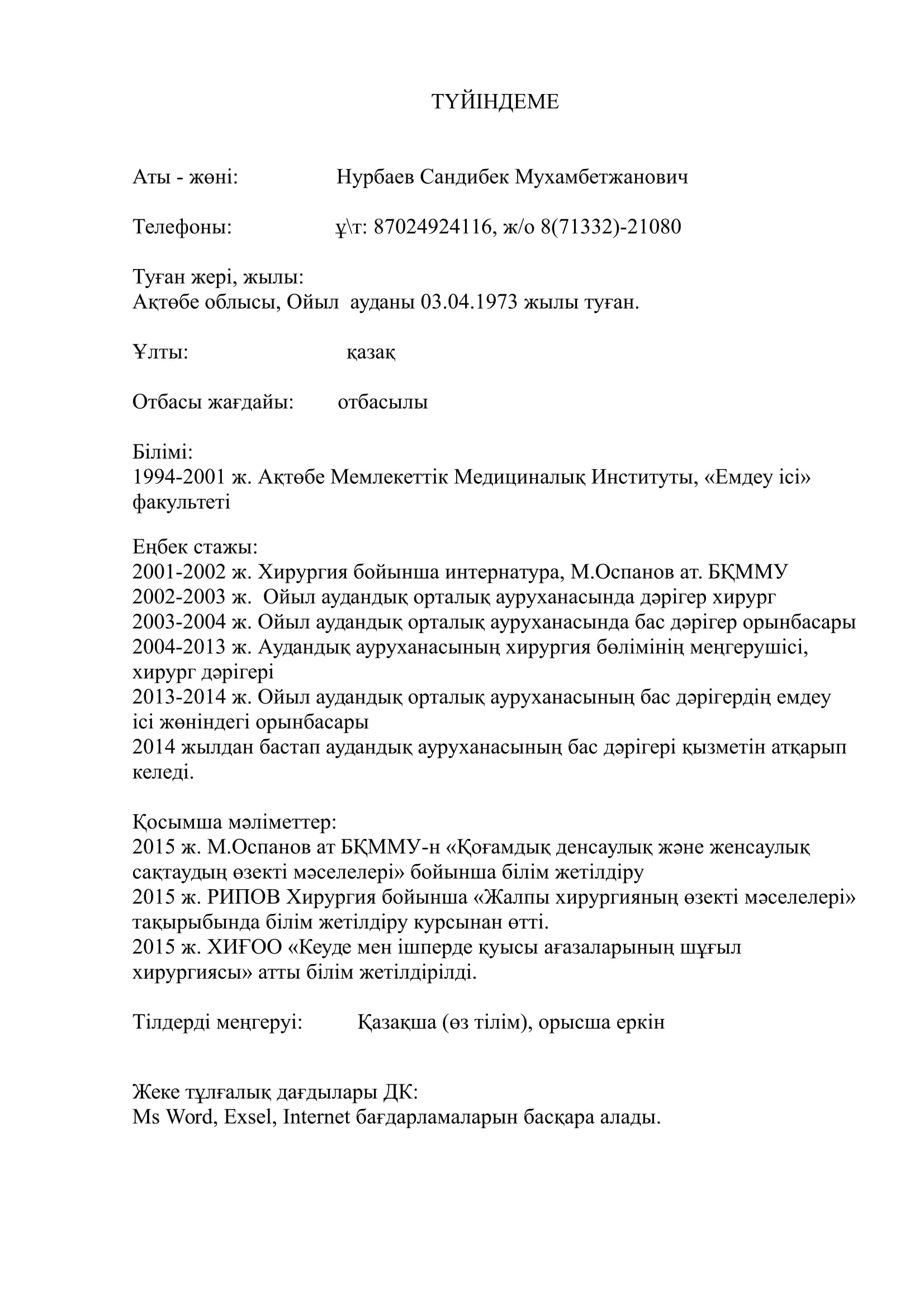 Нурбаев Сандибек Мухамбетжанович