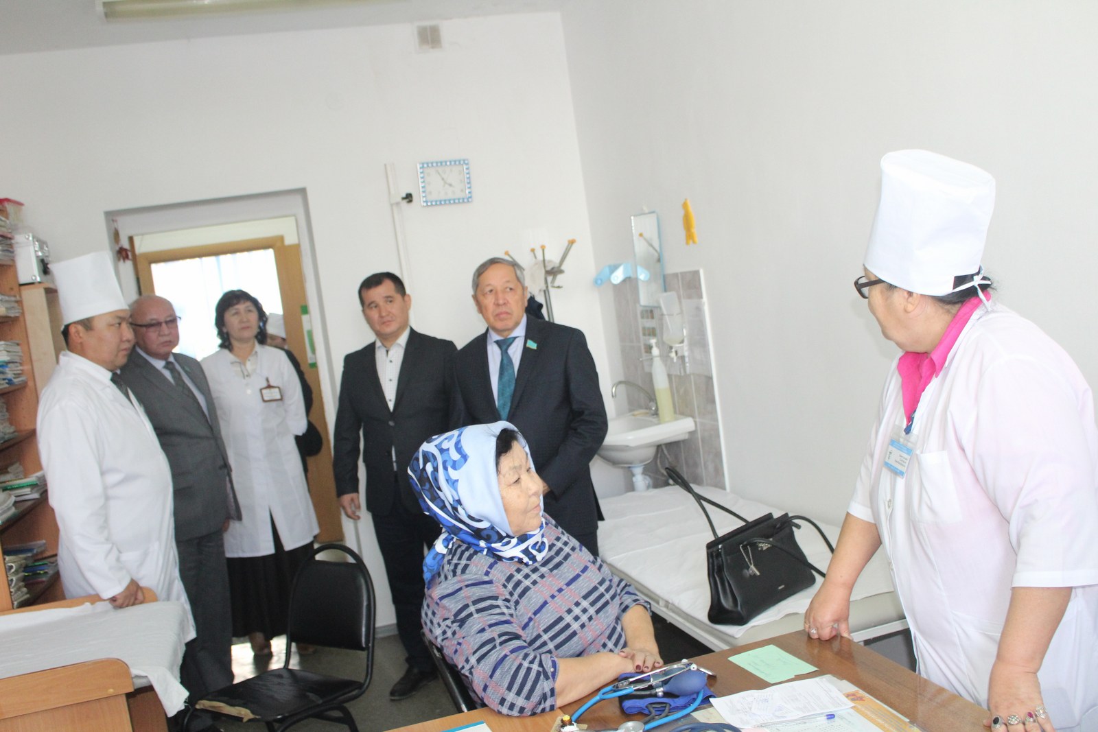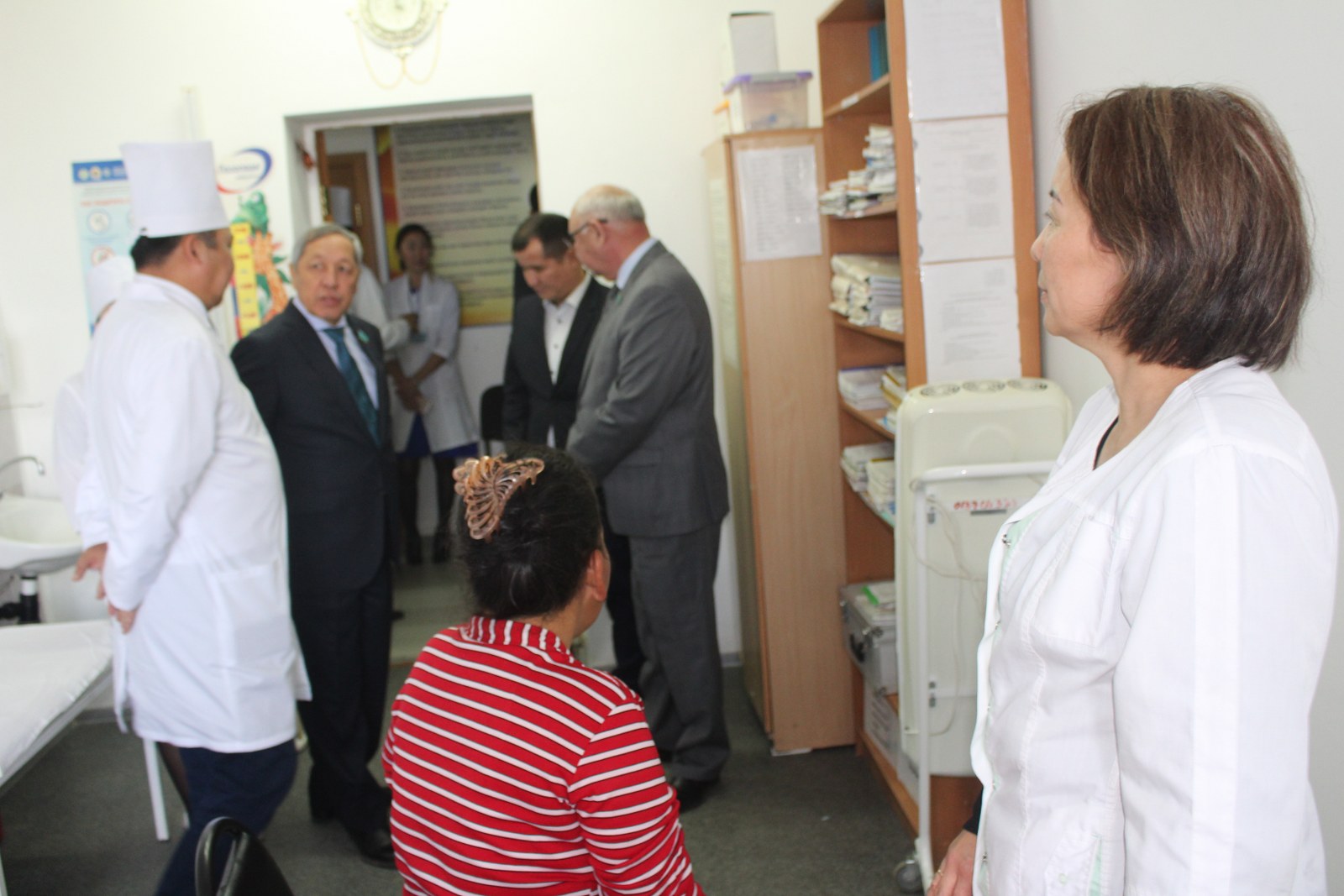 Аудандық аурухана қызметкерлерімен кездесіп, қазіргі таңдағы өзекті проблемалар жөнінде сөз қозғап, медицина қызметкерлеріне лебіз, тілектерін білдірді. Емхана кабинеттерін аралап, аурухананың жұмыс барысымен танысты.